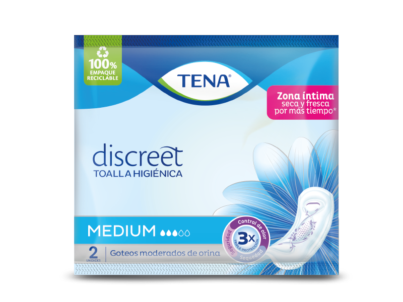 Toallas sanitarias para goteos moderados de orina. Similar en tamaño y forma a una toalla higiénica nocturna, especializada para incontinencia, con tecnología que neutraliza el olor y absorbe más rápido que una toalla femenina convencional para una zona íntima más fresca y seca por más tiempo. Con cubierta extra suave con la piel y materiales respirables para más frescura en la zona íntima. Esta toalla higiénica especializada en incontinencia para mujeres cuenta con canales que distribuyen rápidamente la orina manteniendo la piel libre de humedad.